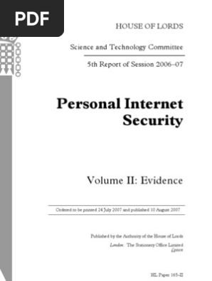 Personal Internet Security Volume Ii Evidence Session 2006 07