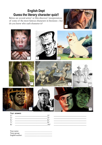 Guess The Literary Characters Quiz Teaching Resources
