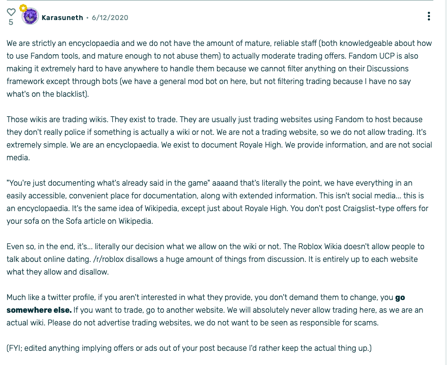Why Exactly Do They Not Allow Trading Posts Fandom