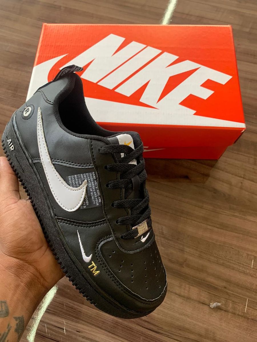 Nike Air Force Preto Simbolo Branco Tenis Masculino Nike Nunca